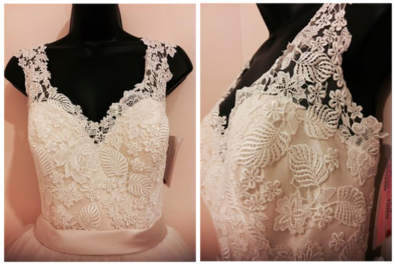 The problem was, after several hours looking at and trying on dresses I still hadn’t found THE dress. I was starting to feel bad, worrying about wasting everyone’s time and having my parents drive so far, when I finally came across a dress with the most beautiful plain lace bodice I’d ever seen. The problem was I only liked the top portion of the dress. I thought it was stunning. Unfortunately the bottom was a ball gown made of TULLE. So so so so so so much tulle. Who in their right mind would want a BALL GOWN made of tulle? I can handle some tulle. But that was just a lot of it.