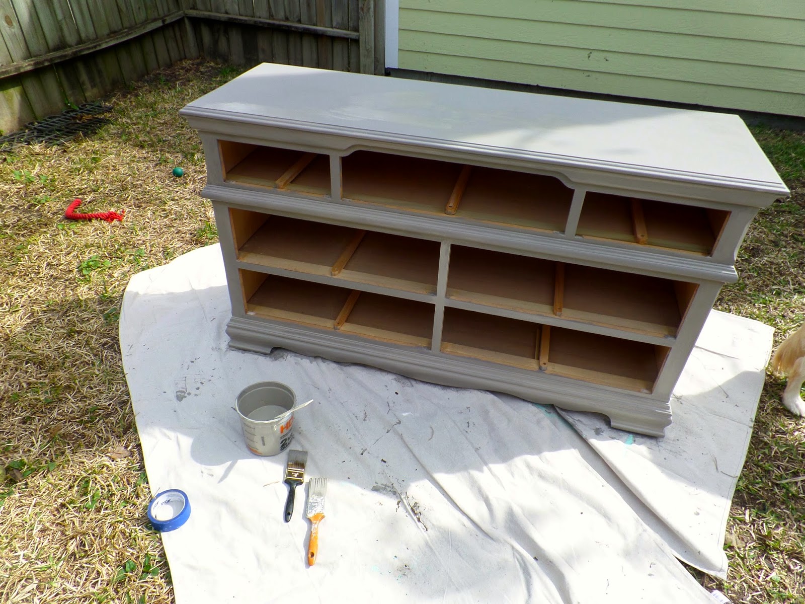 After leaving the dresser out all day to dry, it was time to apply the poly to seal the paint to finish it off.