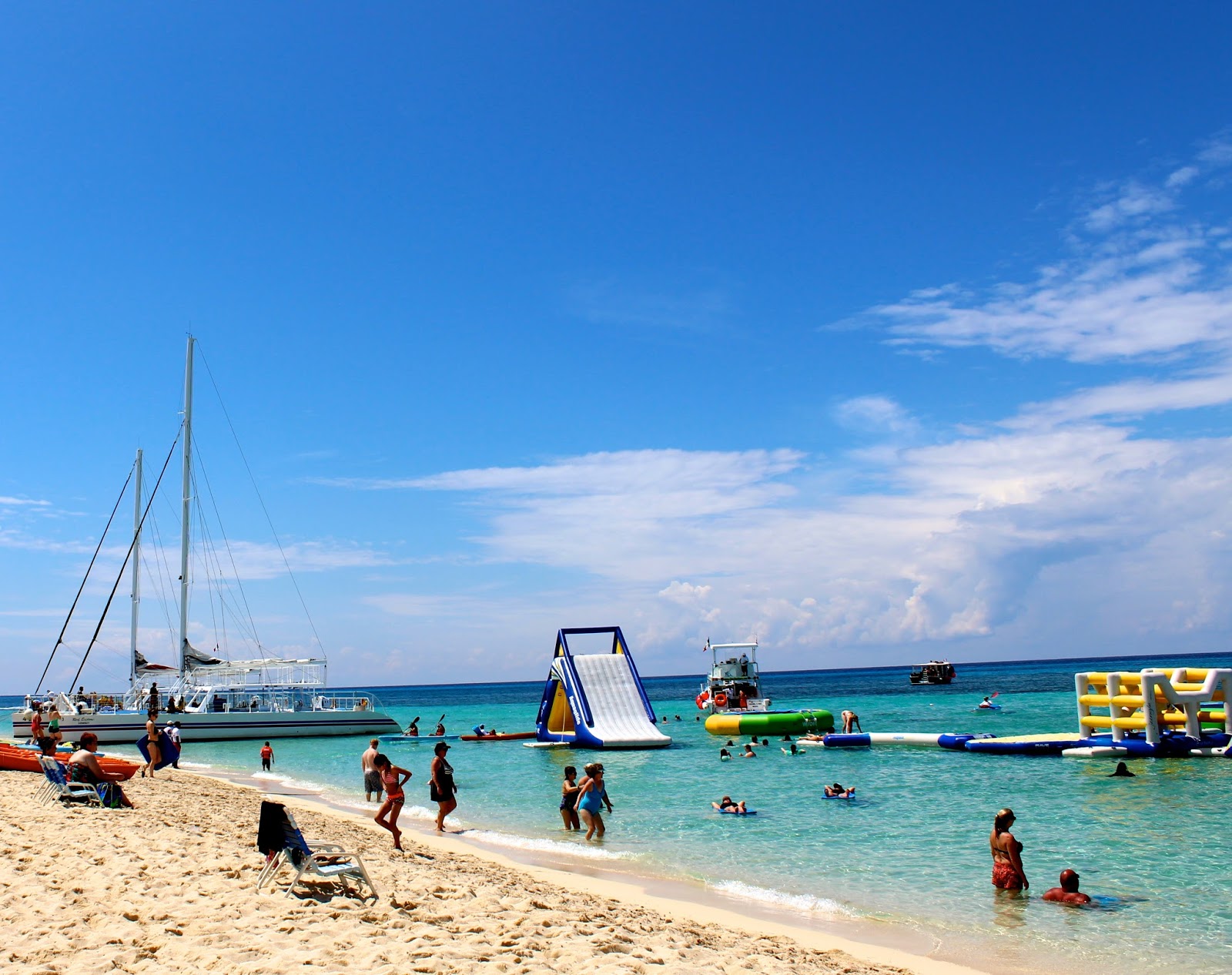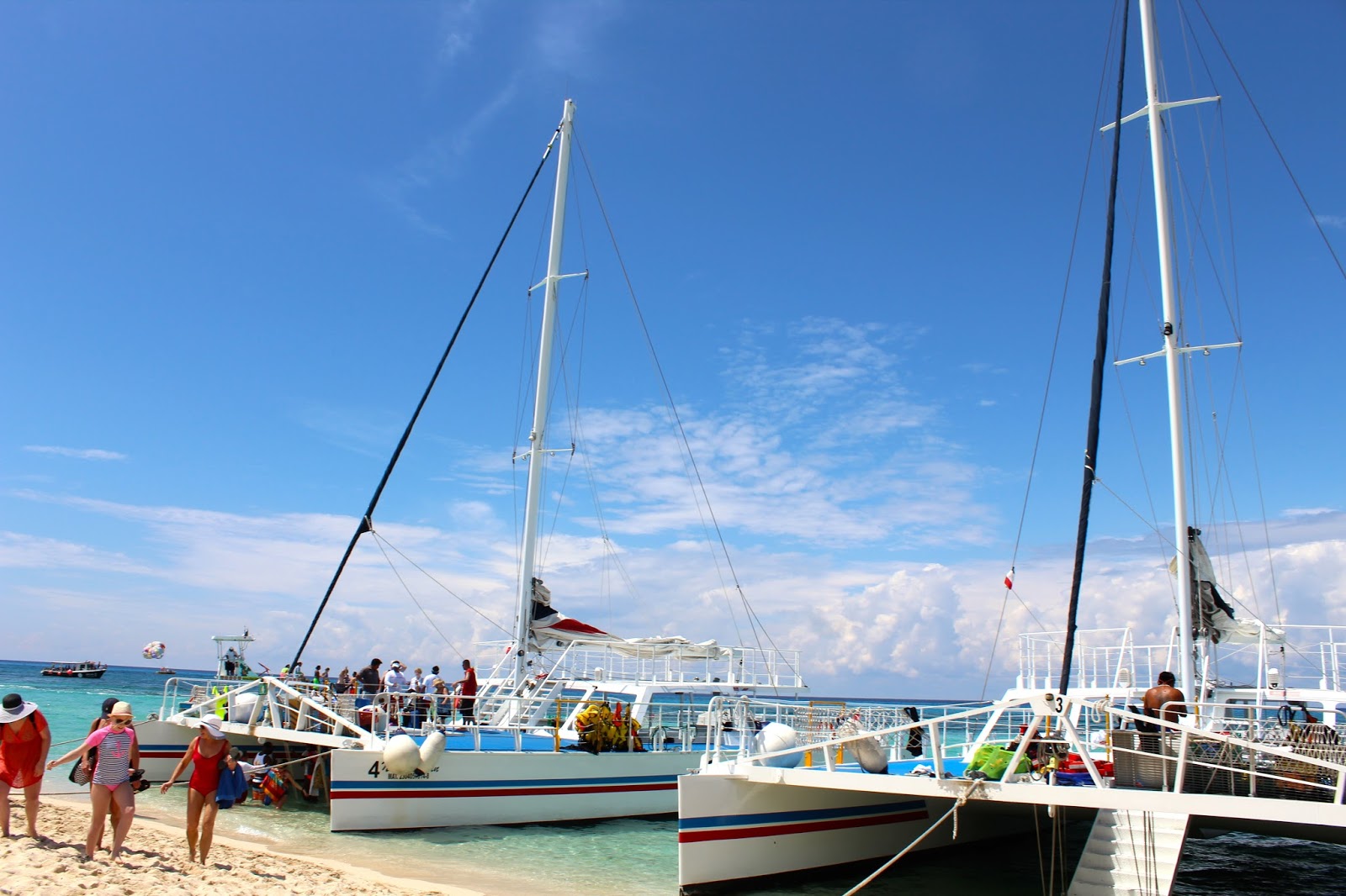 Once off of the boat, we arrived at the port of Cozumel, where palm trees sand … and a catamaran boat awaited us.