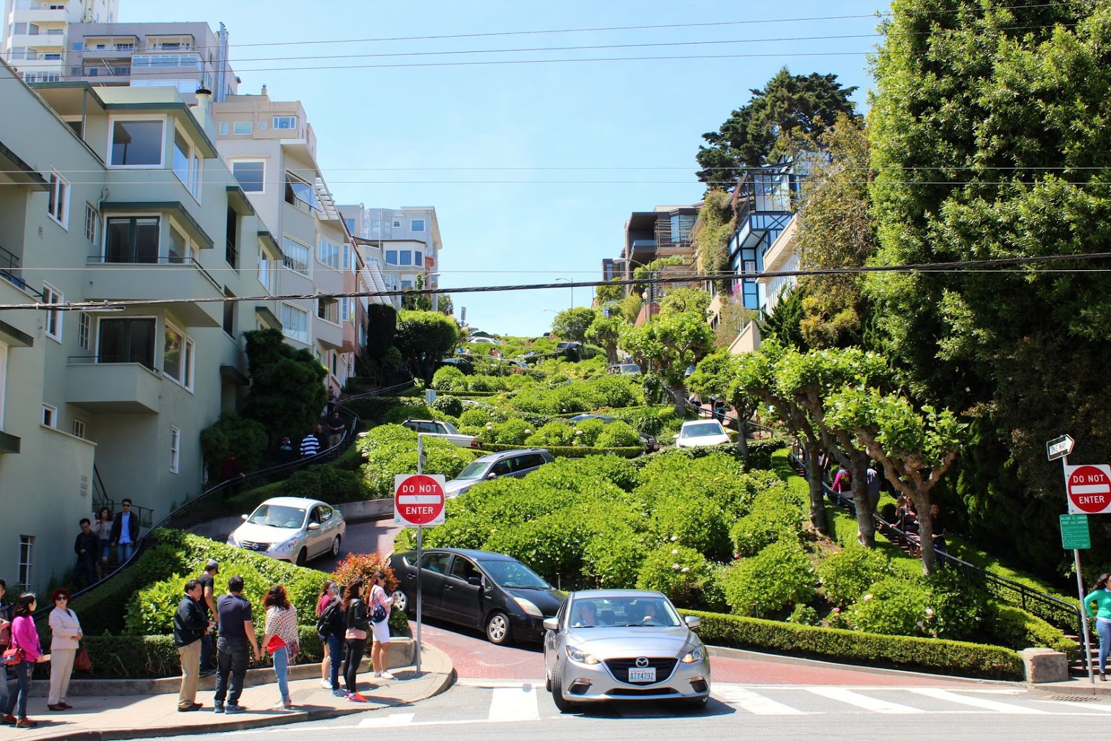 Lombard Street is one of San Francisco’s oldest streets. This crooked street was designed with switchback curves in order to better suit the horses and carriages going uphill back in the day.