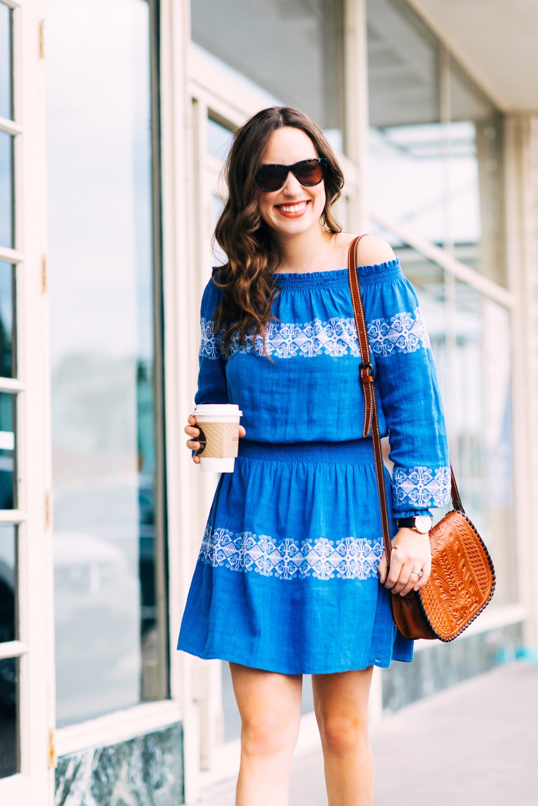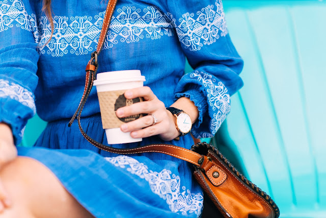 I paired this blue & white (my fav colors) number with a matching crossbody bag & clog sandals.